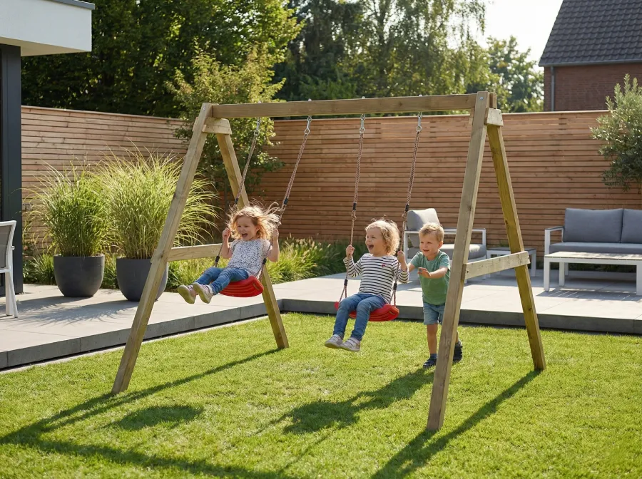 MaxPlay Gyngestativ er et solidt og funktionelt gyngestativ, der skaber rammerne for masser af sjov og aktiv leg i haven. Med to klassiske gynger og en stærk konstruktion er stativet ideelt til børn, der elsker at gynge – både højt og roligt.