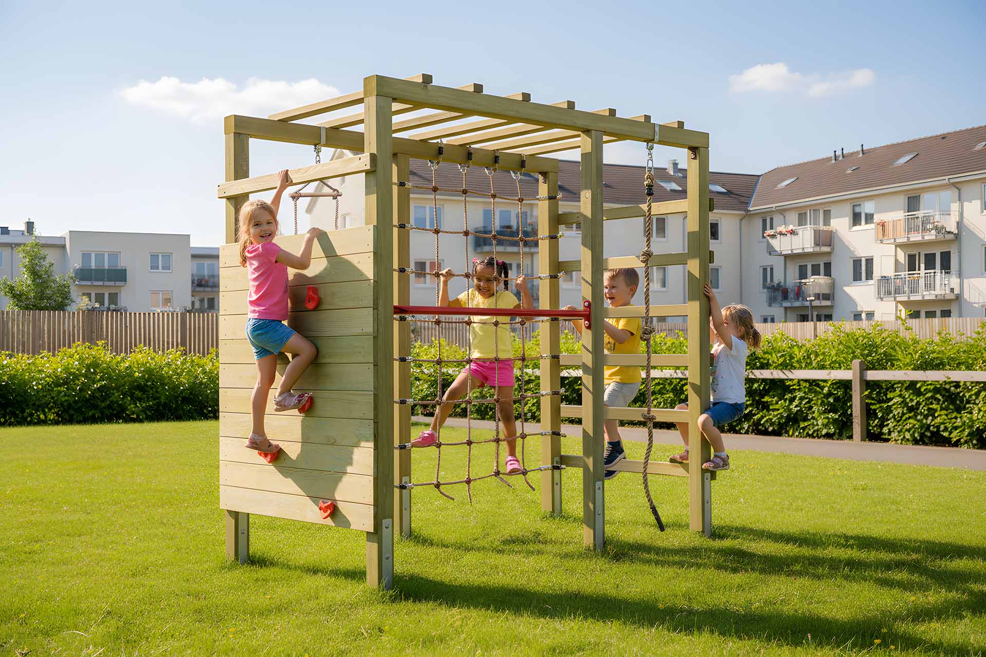 Adventure klatretårn er det oplagte valg til familier, der ønsker et solidt og udfordrende legeredskab, som kombinerer leg, bevægelse og motorisk udvikling – og som hurtigt bliver havens foretrukne samlingspunkt.