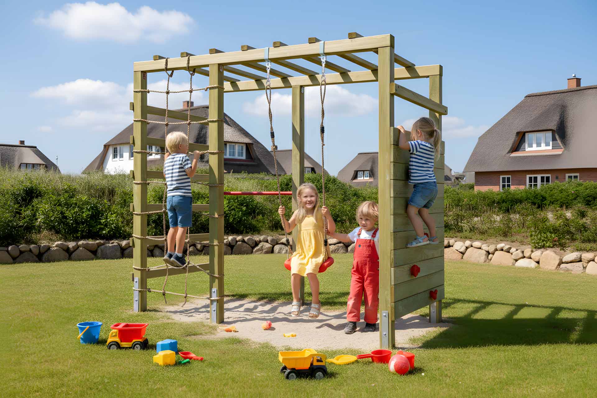 PlayActive klatrestativ er et oplagt valg til familier, der ønsker et robust og alsidigt legeredskab, som giver børnene mulighed for at være aktive, udfordre sig selv og have det sjovt – direkte i haven.